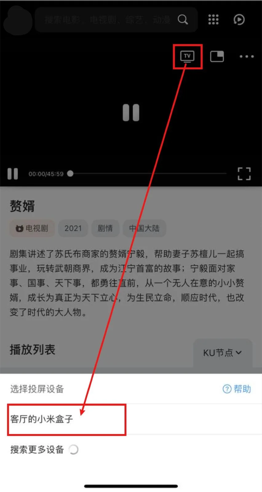 打开夸克浏览器->打开第一动漫->播放视频->选择·····右上角 … ->投屏->等待搜寻出智能电视/电视盒子->选中,即可投屏。